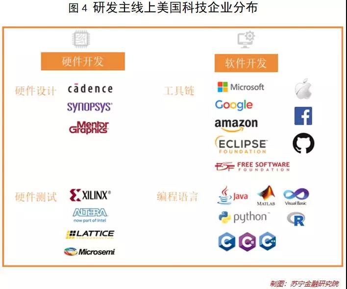 下面,我們沿著研發(fā)主線,進(jìn)一步梳理還有哪些美國(guó)科技企業(yè),以及他們?cè)诳萍及鎴D上的分布情況。